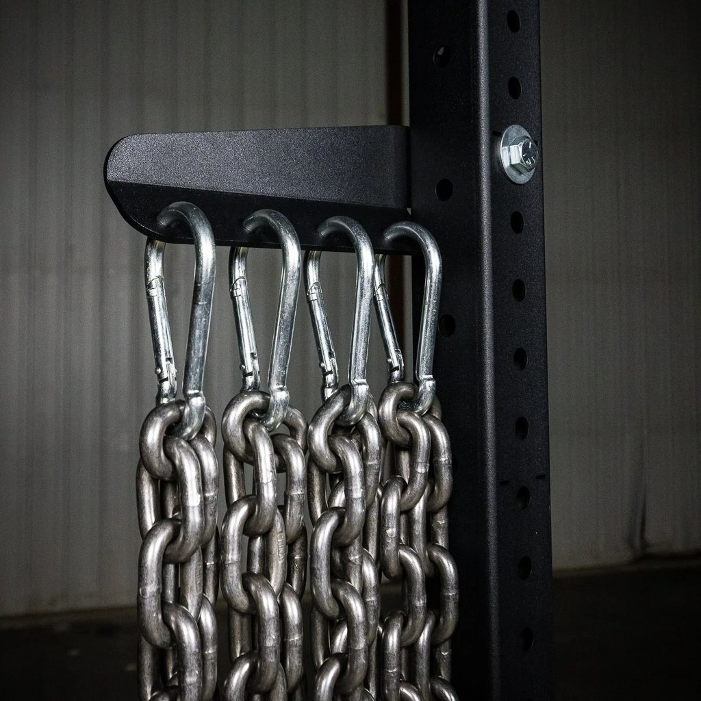 The Build Limitless Chain & Band Storage is a simple and sleek bolt-on solution for getting your chains off the ground and out of the way. Made with heavy-duty steel and our famous black raven powder coat, this hanger isn’t going anywhere – no matter how heavy your chains!
