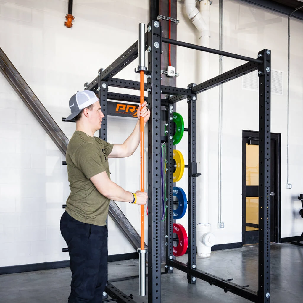 Be smart with your space and store your bar vertically on an upright or crossmember of your Build Limitless rack.