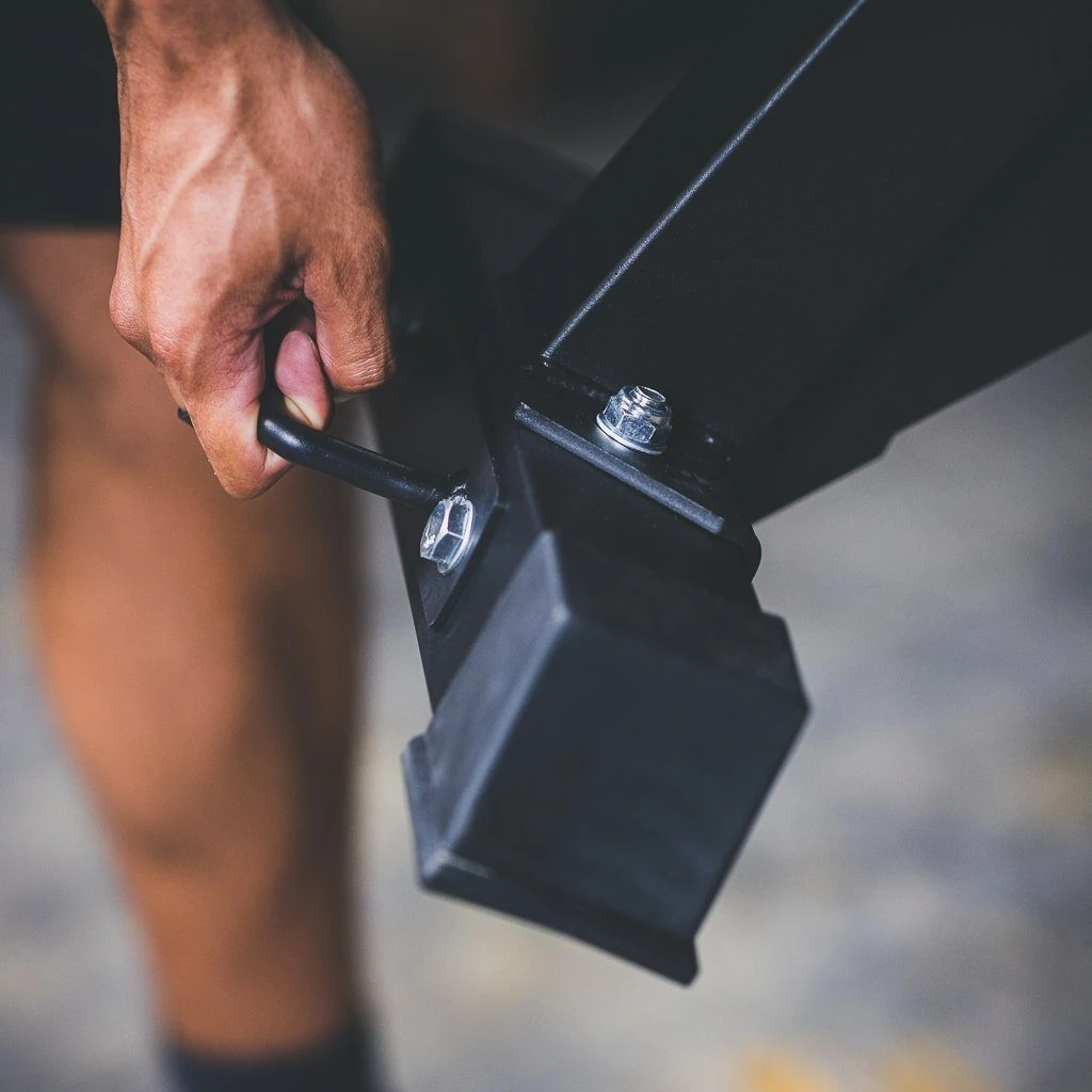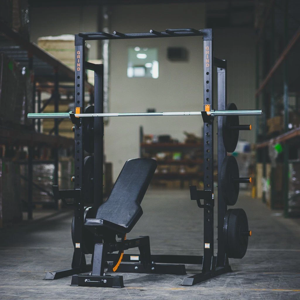 Our partners at GRIND Fitness have one beefy incline bench – it’s got a 3×3 steel base! Along with wheels to move it around the gym, it has 10 labeled incline adjustments and three seat adjustments with pull pins.
