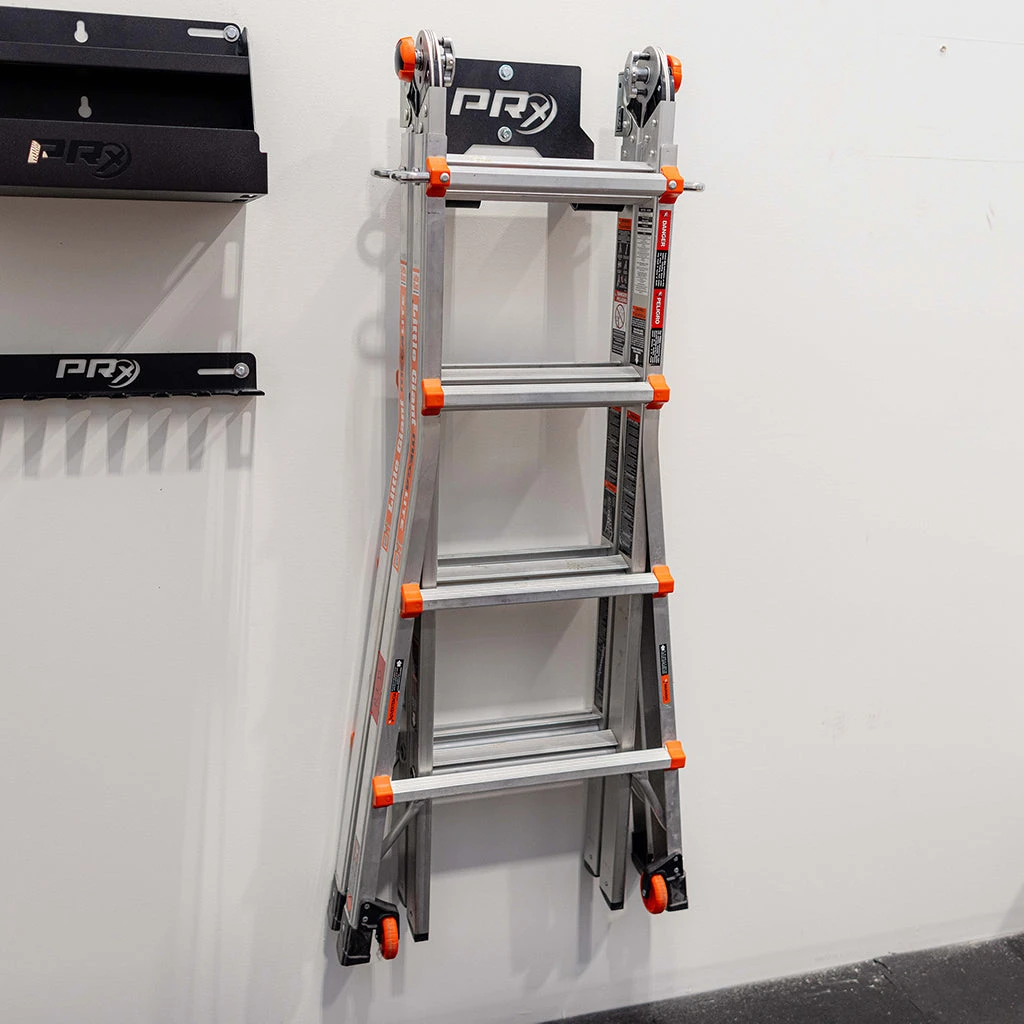 Tired of leaning your ladders against your walls or laying them on the ground? Give them a place to hang on your wall! Our ladder storage keeps your ladders off the ground and your garage looking nice.Â