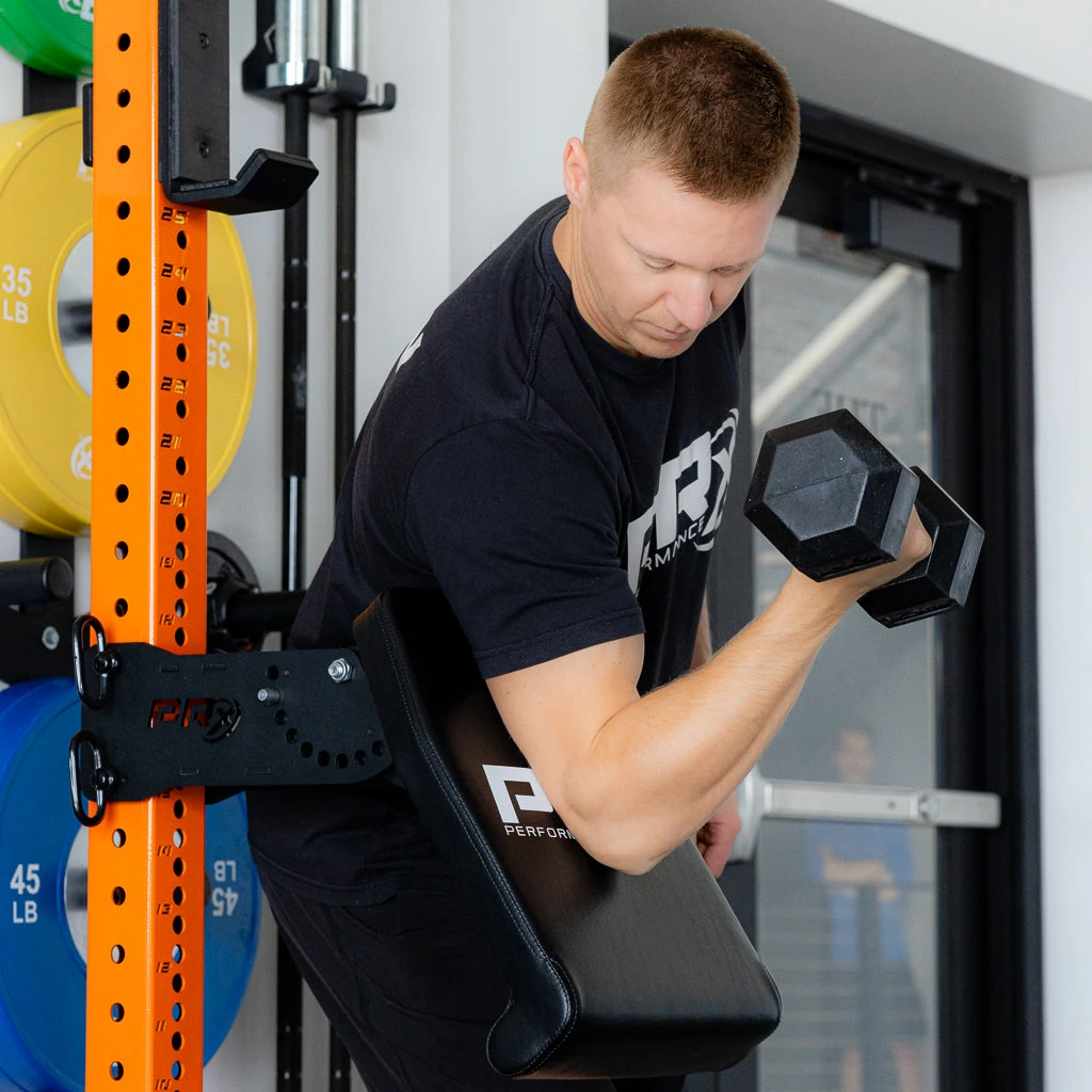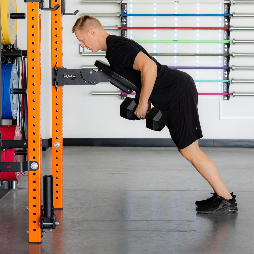 The PRx Axis Pad® is so much more than another seat at the gym. This versatile addition to your workout environment easily pins to any 3″x3″ upright with 5/8″ holes and 4″ spacing. With 9 adjustable angles ranging from -90° to 30°, this pad is a great accessory for chest supported rows, standing incline presses or curls, step ups, and low pulley exercises.