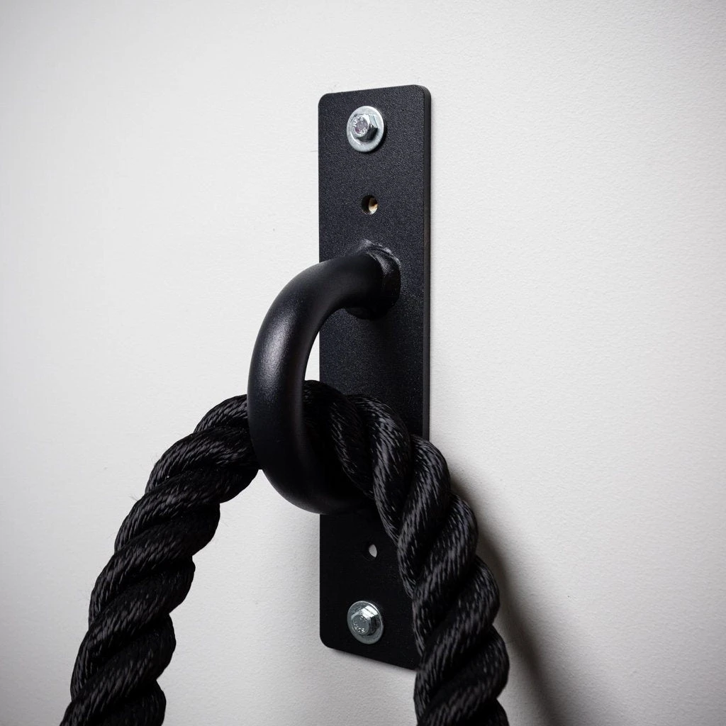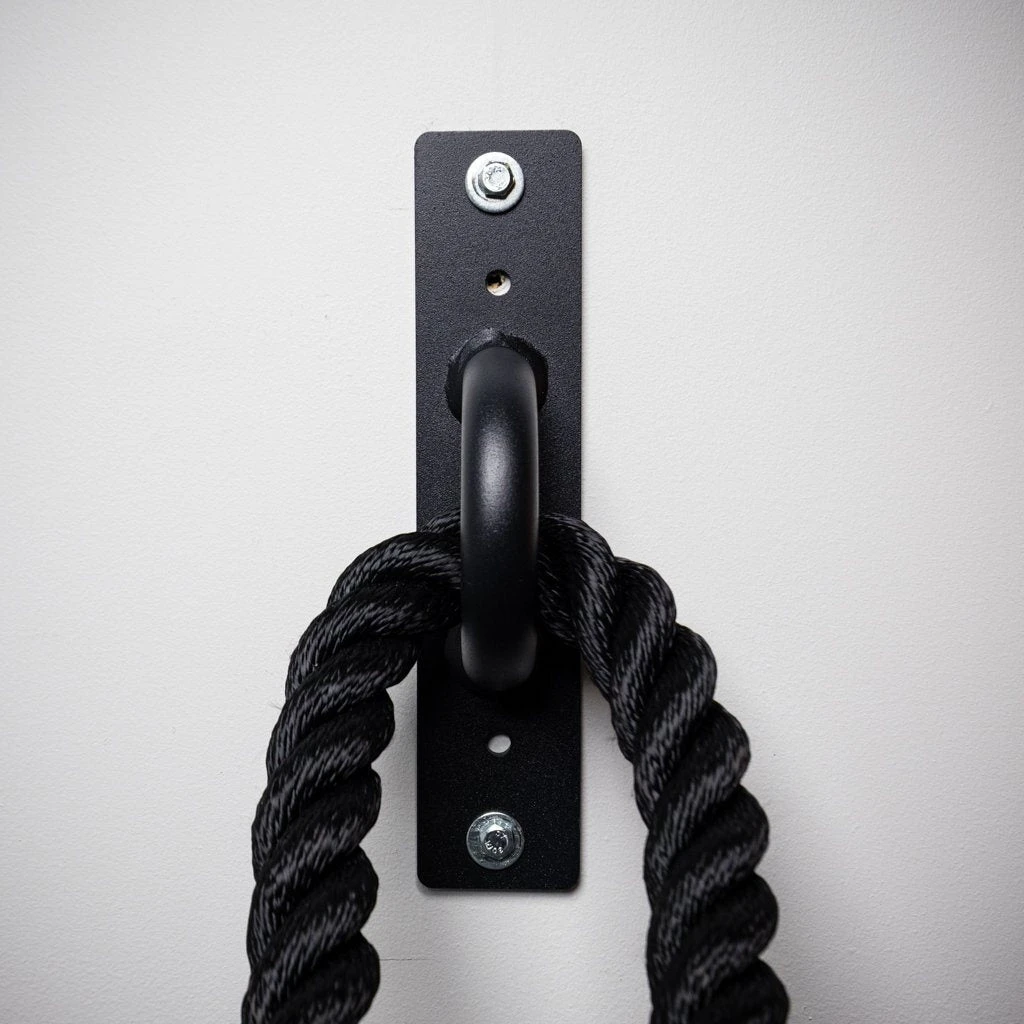 Check out our sturdy-as-hell PRx Battle Rope Anchor. This wall-mounted anchor tucks right under the bottom wall bracket (for standard rack installation). Made in the USA.