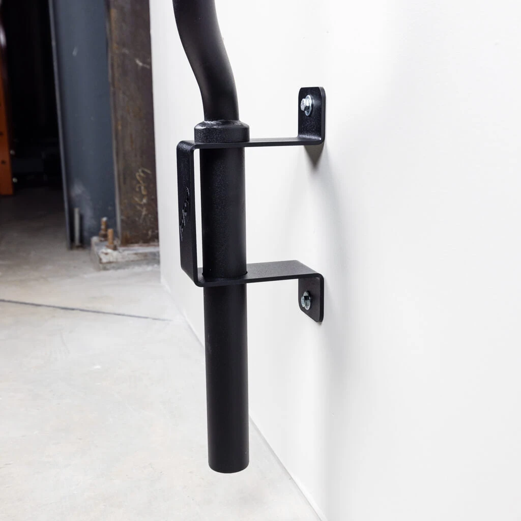 We designed this storage mount to fit just about any safety squat bar and specialty bar on the market. With a deeper profile from the wall, it handles all the bends in all the bars with just one stud.