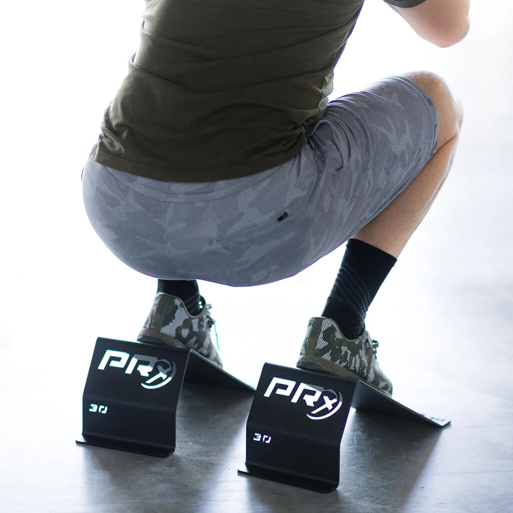 The PRx Squat Wedges are designed for progressive training. Their heavy-duty construction and anti-slip grip tape will help you stay confident while you work on increasing your squat depth, strengthening your knees and ankles, or just plain killing those quads. The simple nesting design allows them to easily be stored when not in use.