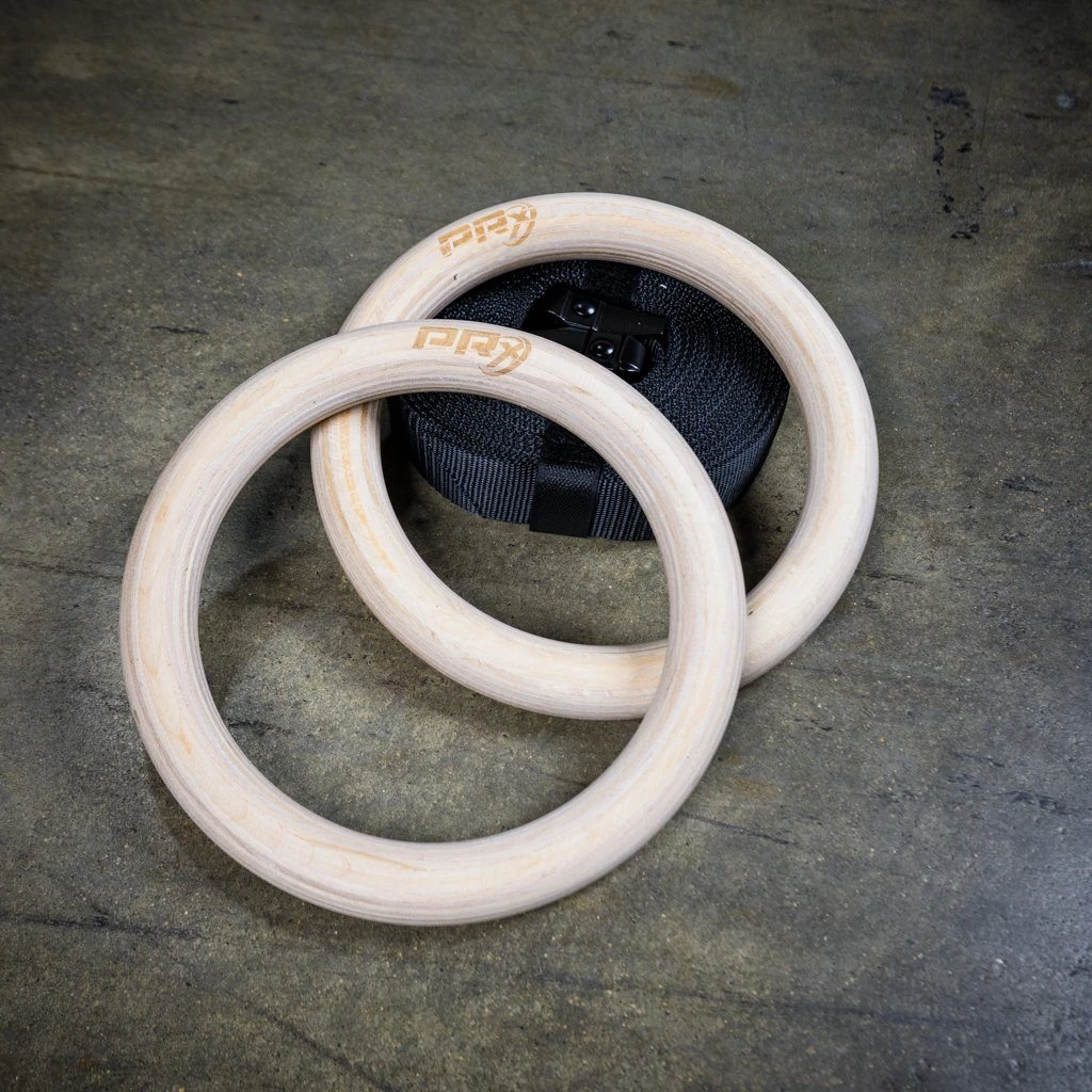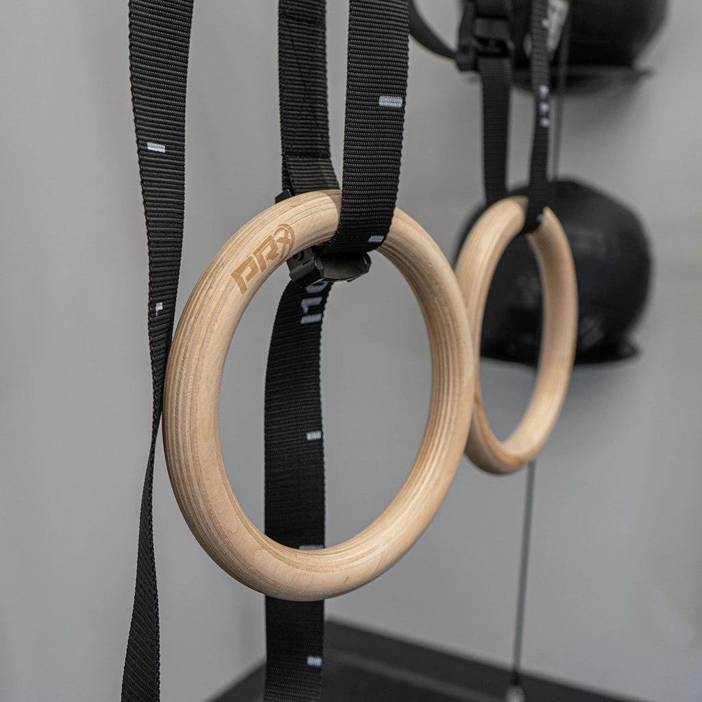No rack? No problem. A strap length of 19’5″ means the PRx Wood Gym Rings can be used just about anywhere. This means the rafters, the swing set, or that sturdy tree in your front yard just became gym equipment. They’re also light weight, portable, and easy to set up.